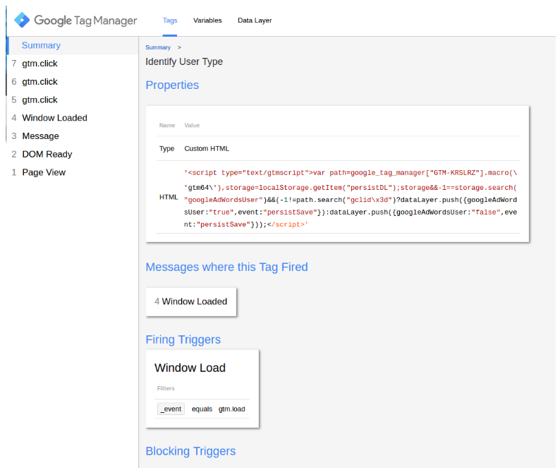 Jedes dieser Events, die ausgelöst werden, ist ein sogenannter Tag. Tags sind Events, die in Abhängigkeit eines Triggers ausgelöst werden. Diese Tags können unter Anderem Informationen an andere Google-Services wie Google Analytics oder Google AdWords weitergeben.