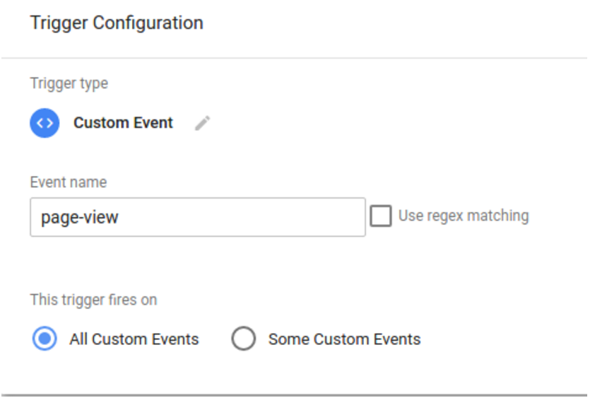 Ein weiterer Tag kann jetzt mit einem Trigger des Typs “Custom Event” ausgelöst werden, sobald dieses Event dem “dataLayer” hinzugefügt wird.