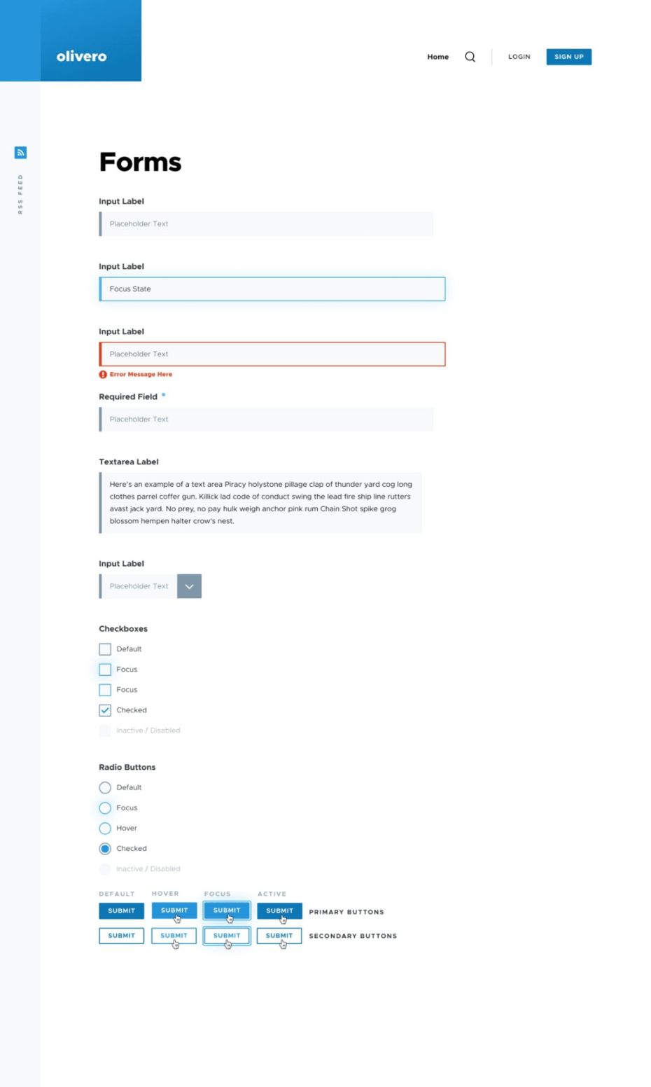 Formulare und Buttons sind mit Olivero benutzerfreundlich und barrierefrei. Am linken Rand von Feldern gibt es einen Farbbalken und die Beschriftungen befinden sich oberhalb der Felder, um die Anforderungen für die Barrierefreiheit der Website zu erfüllen. Buttons werden auf zwei verschiedene Arten dargestellt: primär und sekundär.