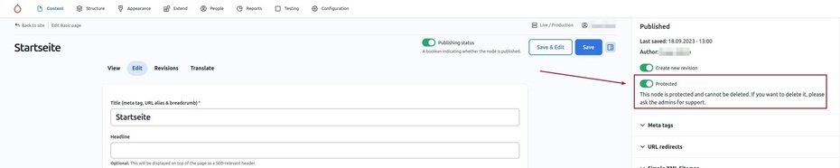 Bestimmte Inhalte sind für die Gewährleistung der Funktionalität einer Website unabdingbar. So Beispielweise Startseiten, Bestätigungsseiten, Impressum, Datenschutz, etc. Hierzu ist es wichtig, dass diese Inhalte vor Löschung geschützt werden.