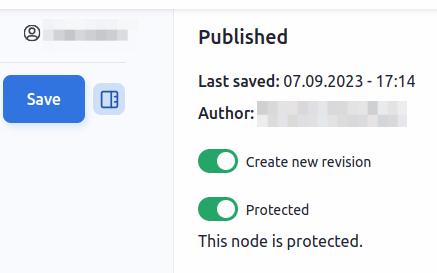 Befähigte Rollen finden nach der Modul-Installation auf der oberen rechten Seite der Inhalte einen Toggle "Protected". Werden diese Inhalte als schützenswert markiert, verschwindet der Delete-Button für Bearbeitende mit unzureichender Berechtigung.