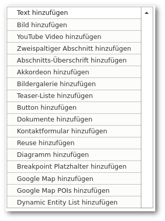 Nach diesem Prinzip funktioniert die gesamte Liste der Funktionen. Selbst vorgefertigte Inhalte können so (mittels Themes) in das System übernommen werden. Das ist beispielsweise bei vorhandenen Grafiken und Bildern interessant. Als einfaches CMS bietet es vorgefertigte Module an für: