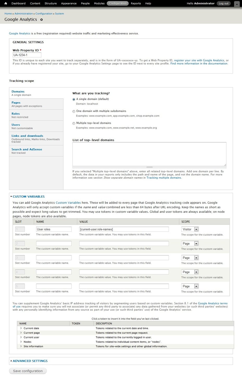 The module makes it easier to work with Google Analytics on your Drupal site. You can use it to track domains, exclude individual users or roles from statistics or check which files have been downloaded by visitors. You can also manage user-defined settings for dimensions and metrics. You can find the entire list of features on the Drupal module page.