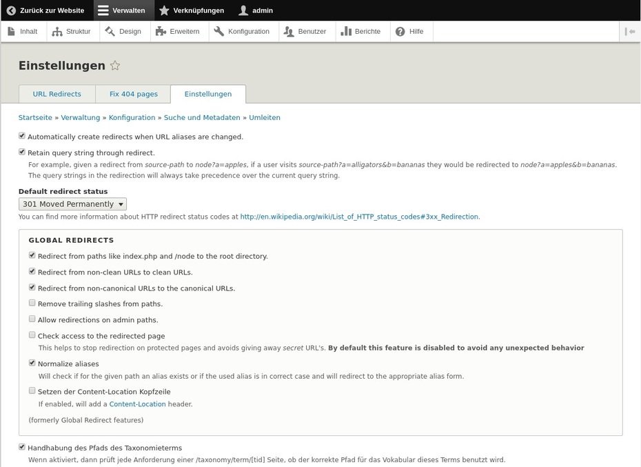 Global Redirect: This helper ensures that duplicate content is prevented. Drupal creates object URLs such as "/node/123". These are not "readable" for humans (what is behind this?). To counteract this problem, you can change the URL alias with other modules. However, Drupal does not remove the old URL → Duplicate content under 2 different URLs. "Global Redirect" checks during page loading whether there is an alias for this page, then interrupts loading and loads the content from the alias page.