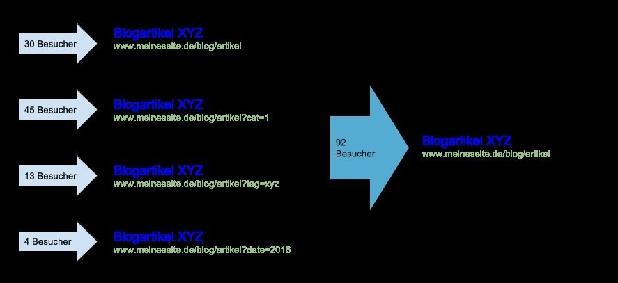 Sie haben z. B. einen Blog mit der URL "meineseite.de/blog". Diesen können Ihre Besucher als Tabelle, Liste oder Raster darstellen. Es entstehen dabei verschiedene URLs mit verschiedenen Ansichten, aber gleichem Inhalt: