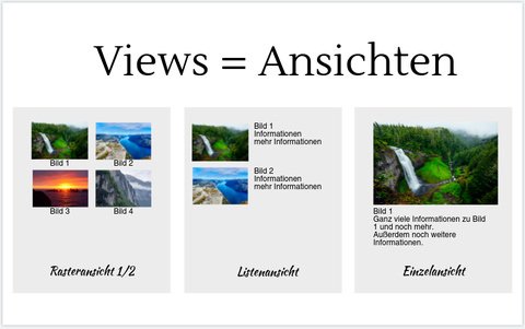 Definition: Views ist ein Modul für Drupal, das zulässt, verschiedene Ansichten von Inhalten zu generieren.