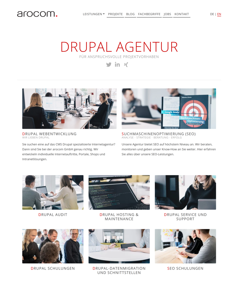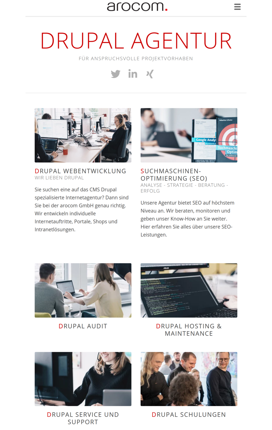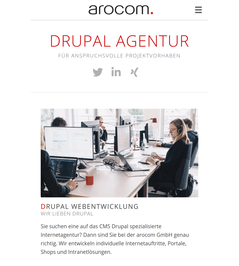 Als Drupal-Agentur wissen wir, wie wichtig mobilfreundliche Webseiten sind. Darum sind alle unsere Webprojekte auf alle Bildschirmgrößen optimiert.