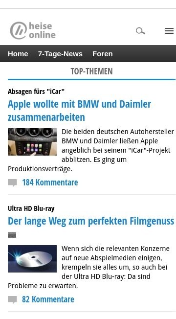 auf www.heise.de (erstes Bild) muss der Smartphone-Nutzer heranzoomen, um die Inhalte lesen zu können, während sie bei t3n.de (zweites Bild) ohne weiteres leicht lesbar sind. Zwar hat heise eine mobile Seite m.heise.de (drittes Bild), aber hier gilt o. g. Problem der doppelten Pflege. Dazu kommt, dass Bildschirmgrößen auch später noch variieren werden. Statt hier jedesmal eine neue Seite zu bauen, sollten Sie lieber auf Responsive Webdesign setzen, denn die Anpassungen sind hier leicht erledigt.